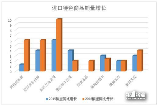 作为2016年的水果明星,智力车厘子、墨西哥牛油果在2016年走进了中国的千家万户。此外,阿根廷红虾、厄瓜多尔白虾等进口海产也走上了百姓餐桌,特别是各种节日期间,销量大幅上升。菲律宾7D芒果干、印尼进口果蔬干、丽芝士,越南进口LIPO面包干等食品也畅销全国,成为城市消费者喜爱的休闲零食。
