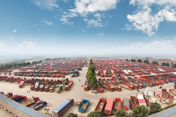 建设中的长沙传化公路港将成为中南地区现代公路物流的重要枢纽。图为已经建成的成都传化公路港车源中心。