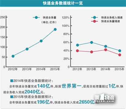 2015年全国邮政管理工作会议上公布的数据显示, 2014年中国快递业务量完成140亿件,跃居世界第一。这份耀眼的成绩单一经公布,便引起了业内人士的广泛关注。虽然在过去的一年中国快递业务发展势头迅猛,但行业发展中暴露出的一些问题也引起了邮政管理部门的注意。国家邮政局局长马军胜表示,2015年邮政管理工作将持续加大政策扶持力度。此外,马军胜强调,对于跨境电子商务存在的问题,城市快递车辆出现的瓶颈以及如何实施邮政、快递与铁路、航空联动,这些问题的解决都将被提上日程。