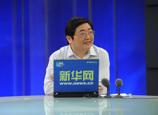 2013年6月6日9点30分,中国铁路总公司运输局局长程先东做客新华网,为网友介绍铁路货运组织改革有关情况。图为嘉宾介绍情况。新华网 李欣 摄