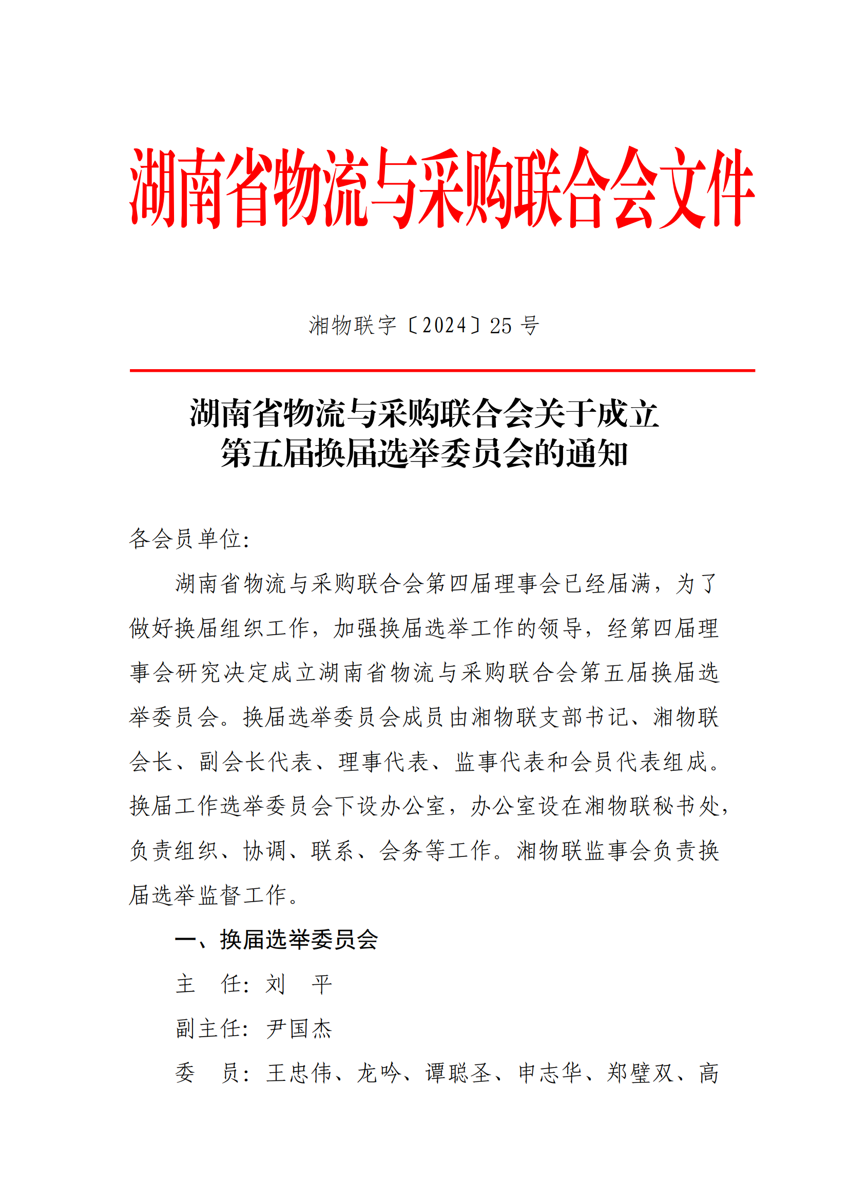 湖南省物流與采購聯(lián)合會關于成立第五屆換屆選舉委員會的通知