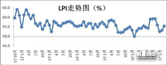 中国物流与采购联合会发布的2017年3月份中国物流业景气指数为55.4%较上月回升2.2个百分点;中国仓储指数为54.5%,较上月回升0.5个百分点;中国公路物流运价指数为107.8点,比上月回落1.8%。