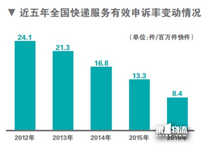 此外,相关调查还显示,去年全国快递服务满意率为74.4分,比上年提高0.7分,全国快递服务满意度74.7分,全国快递服务有效申诉率百万分之8.4,比上年减少4.9,同比下降37%,而这也是有效申诉率连续第四年下降。
