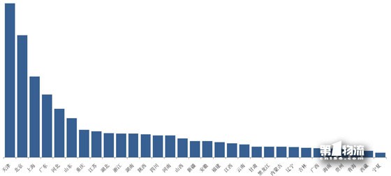 2015年8月份各省LHI指数的排名情况如图3所示,天津市位居第一,且排名前5省份的LHI指数占总指数的52%。