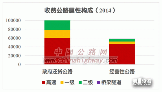 收费高速公路中,政府还贷高速公路6.01万公里,经营性高速公路4.66万公里,分别占高速公路总里程的56.3%和43.7%。