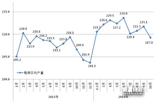 1-10月全国平均粗钢日产量情况图