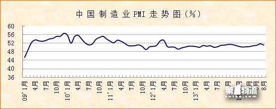 中国物流与采购联合会、国家统计局服务业调查中心发布的2014年8月份中国制造业采购经理指数(PMI)为51.1%,比上月回落0.6个百分点。该指数虽然有所回落,但仍保持在51%以上。综合来看,当前经济运行基本平稳态势没有改变。