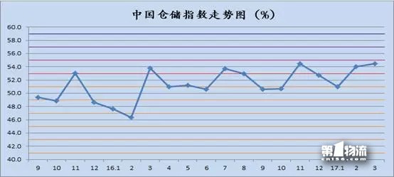 中国物流与采购联合会发布的2017年3月份中国物流业景气指数为55.4%较上月回升2.2个百分点;中国仓储指数为54.5%,较上月回升0.5个百分点;中国公路物流运价指数为107.8点,比上月回落1.8%。