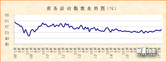 中国物流与采购联合会、国家统计局服务业调查中心发布的2017年3月份中国非制造业商务活动指数连续六个月运行在稳定在54%以上的较高水平,环比上升0.9个百分点,达到55.1%;新订单指数连续三个月稳定51%以上,环比上升0.7个百分点,达到51.9%;投入品价格指数连续三个月回落,较上月下降1.4个百分点,达到52.3%;从业人员指数虽有回落,仍稳定在49%以上,较去年同期继续回升。综合来看,非制造业市场经营稳步攀升,需求回升明显,企业成本压力有所缓解,就业保持稳定,非制造业呈现稳中向好运行趋势。